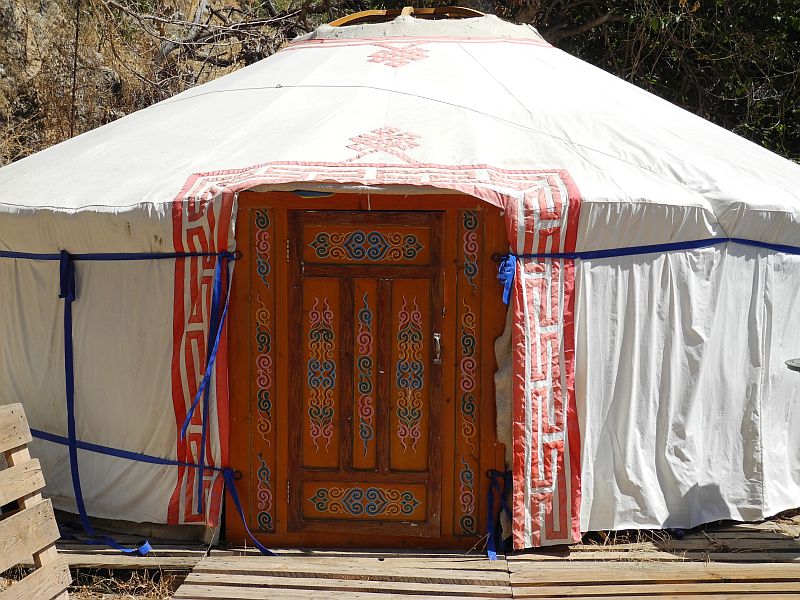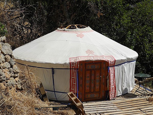 Aikes mongolische Jurte steht mittlerweile (2017) auf einer der Terrassen unterhalb der Taverne. In ihrer Mitte befindet sich ein kleiner Ofen für kältere Nächte. Die Terrassen sind mit Steintreppen miteinander verbunden.